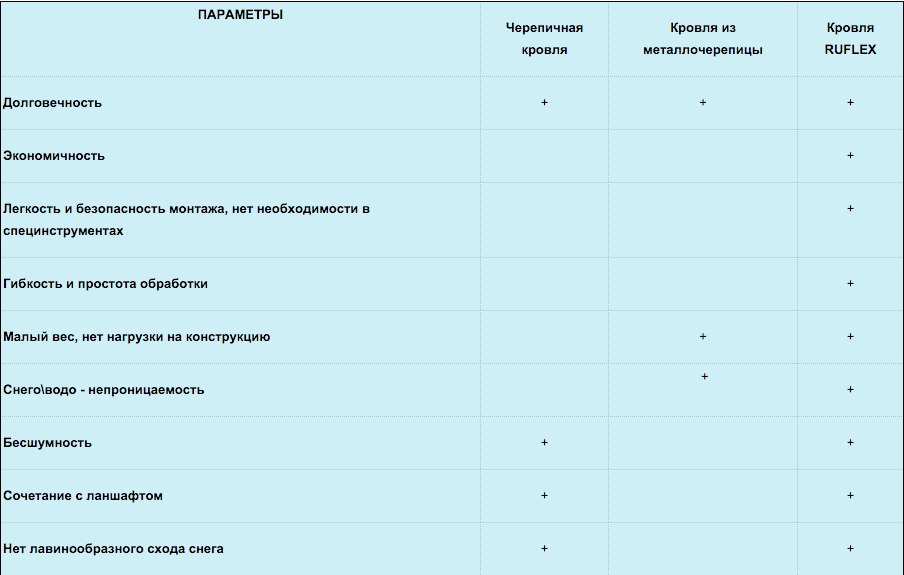 СРАВНИТЕЛЬНАЯ ТАБЛИЦА КРОВЕЛЬНЫХ МАТЕРИАЛОВ