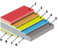 Сырьем для производства металлочерепицы служит стальной оцинкованный листовой прокат. Для улучшения эстетических и антикоррозионных свойств на лист наносят полимерное покрытие с многослойной основой: